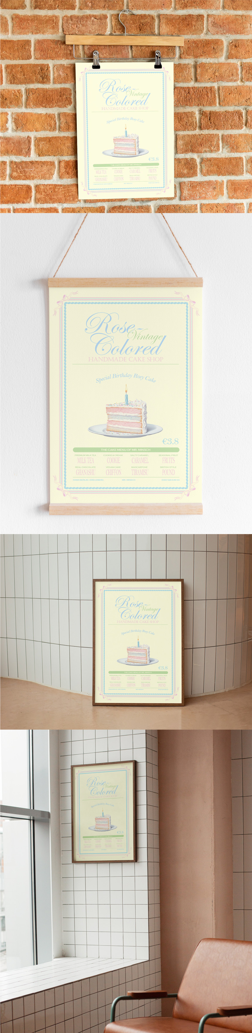 [요로코롬스튜디오] 케이크 포스터 빈티지 디저트 홈카페인테리어 액자 HBD cake